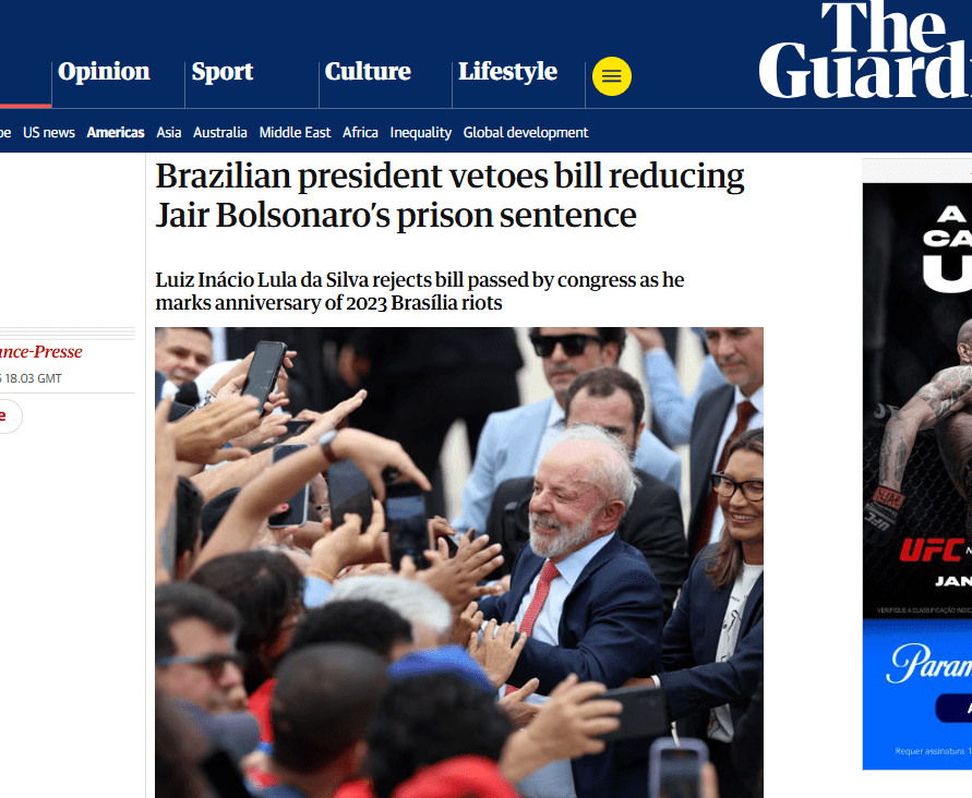 Brasil tem 8 vezes mais menções positivas do que negativas no exterior com veto de Lula a dosimetria e acordo UE-Mercosul